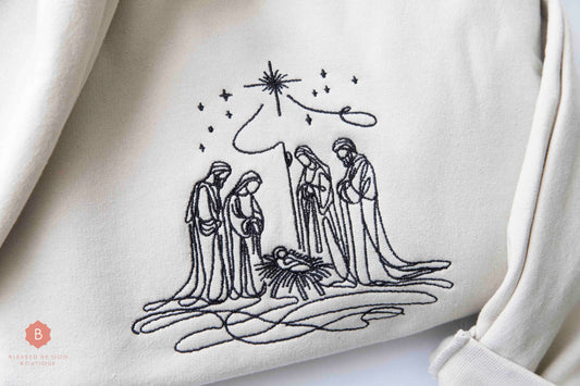 Nativity Scene Embroidered Catholic Christmas Sweatshirt