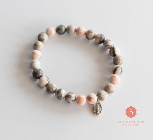 Catholic bracelet, Miraculous Medal, zebra jasper