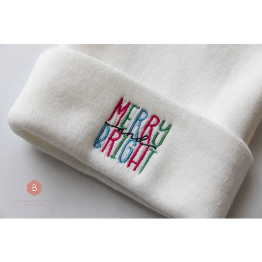 Merry and Bright Christmas Cuffed Beanie